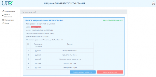 Для того, чтобы подать заявление на участие в Едином национальном тестировании, необходимо перейти во вкладку «Подать заявление».